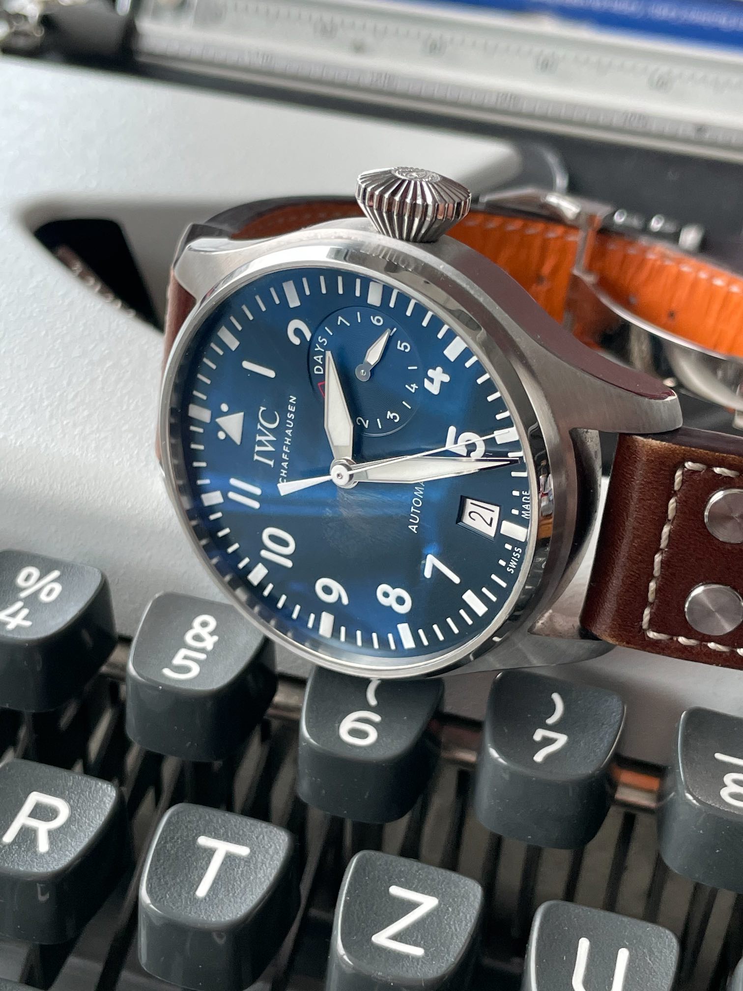 The dial is very well executed . The original big pilot model has a black dial but this iteration has a different character. Perhaps more elegant.