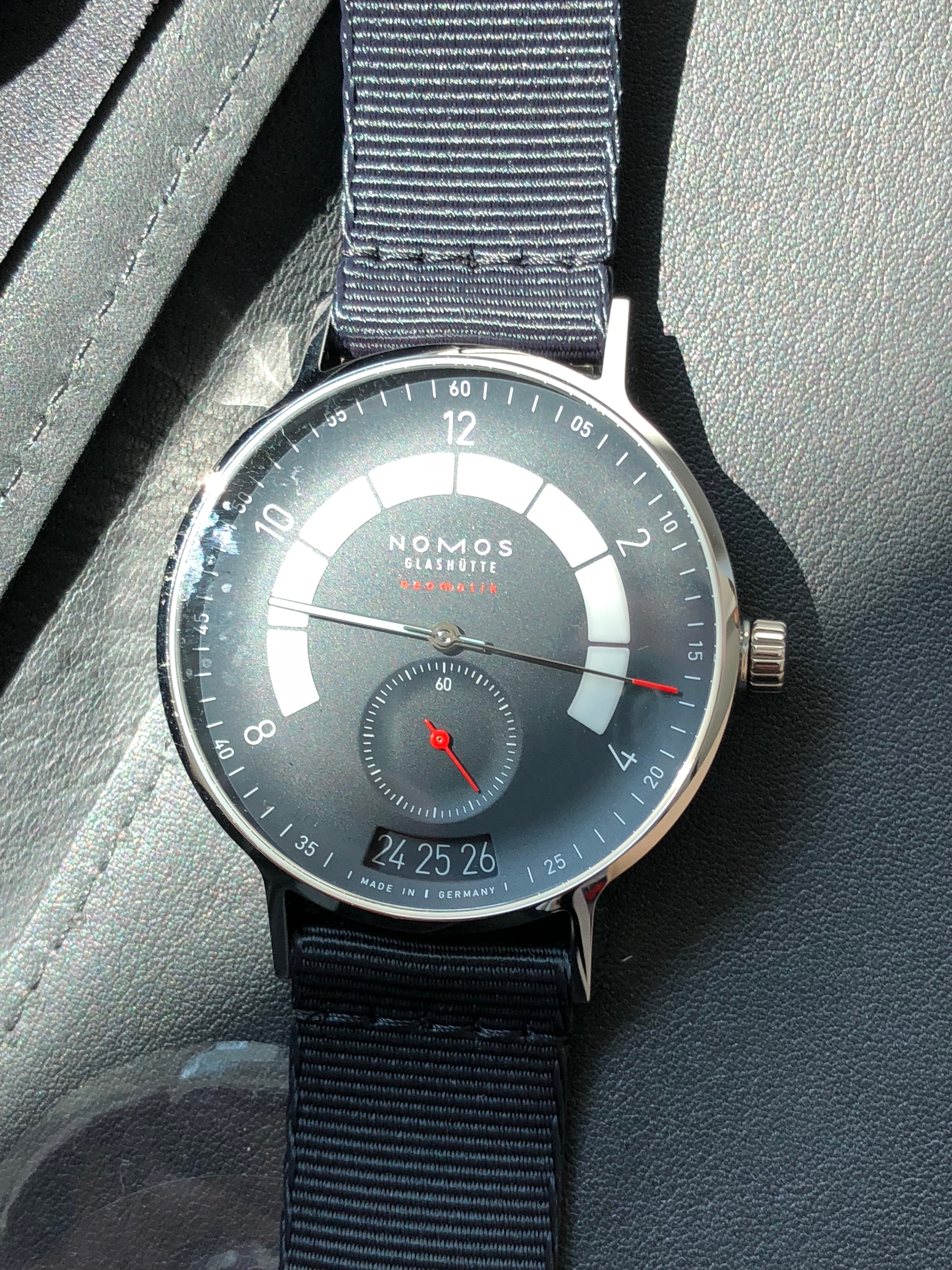 and here is the Nomos Autobahn. Our version is the midnight blue as it might be a tad more special and dressy.