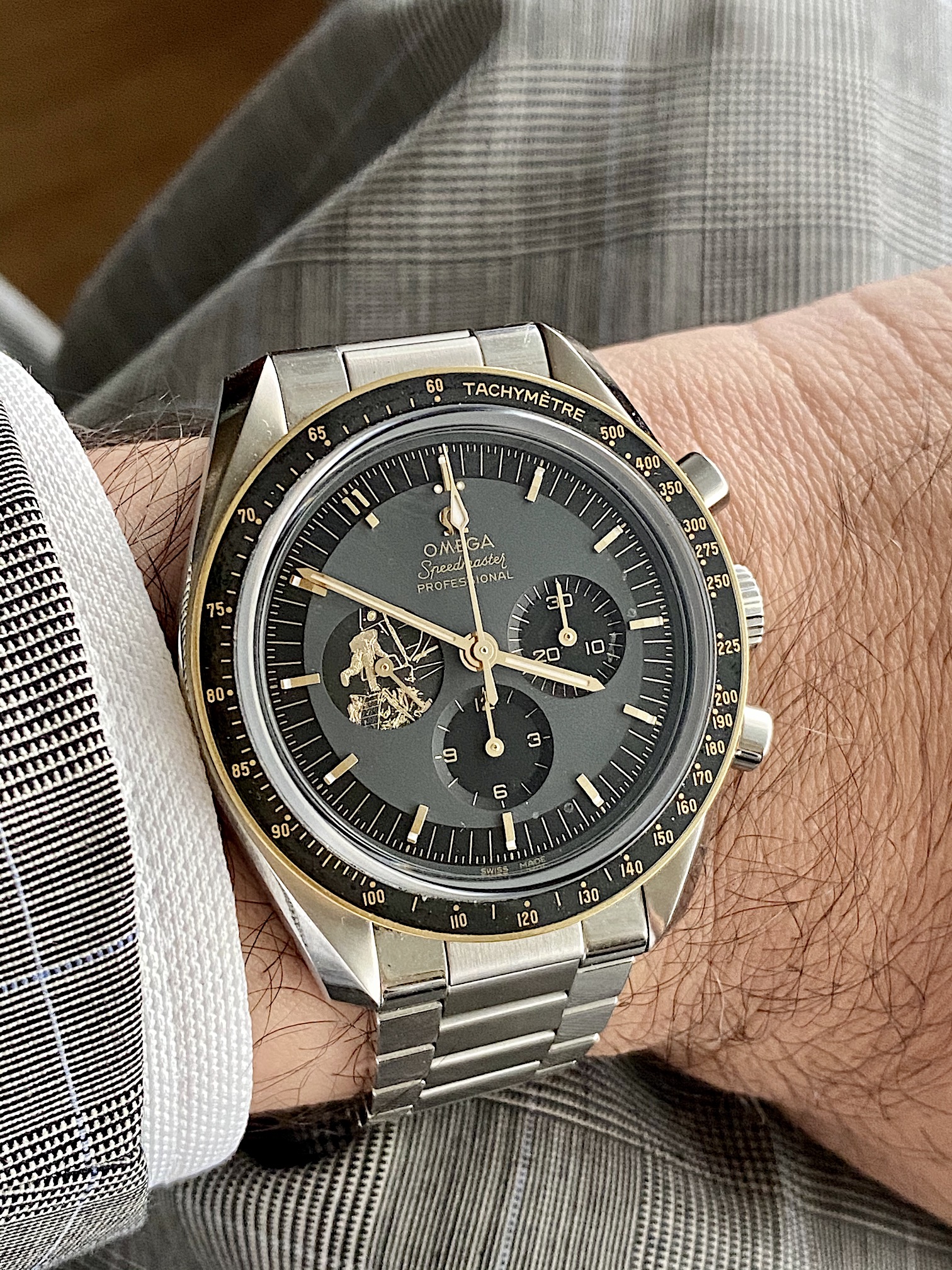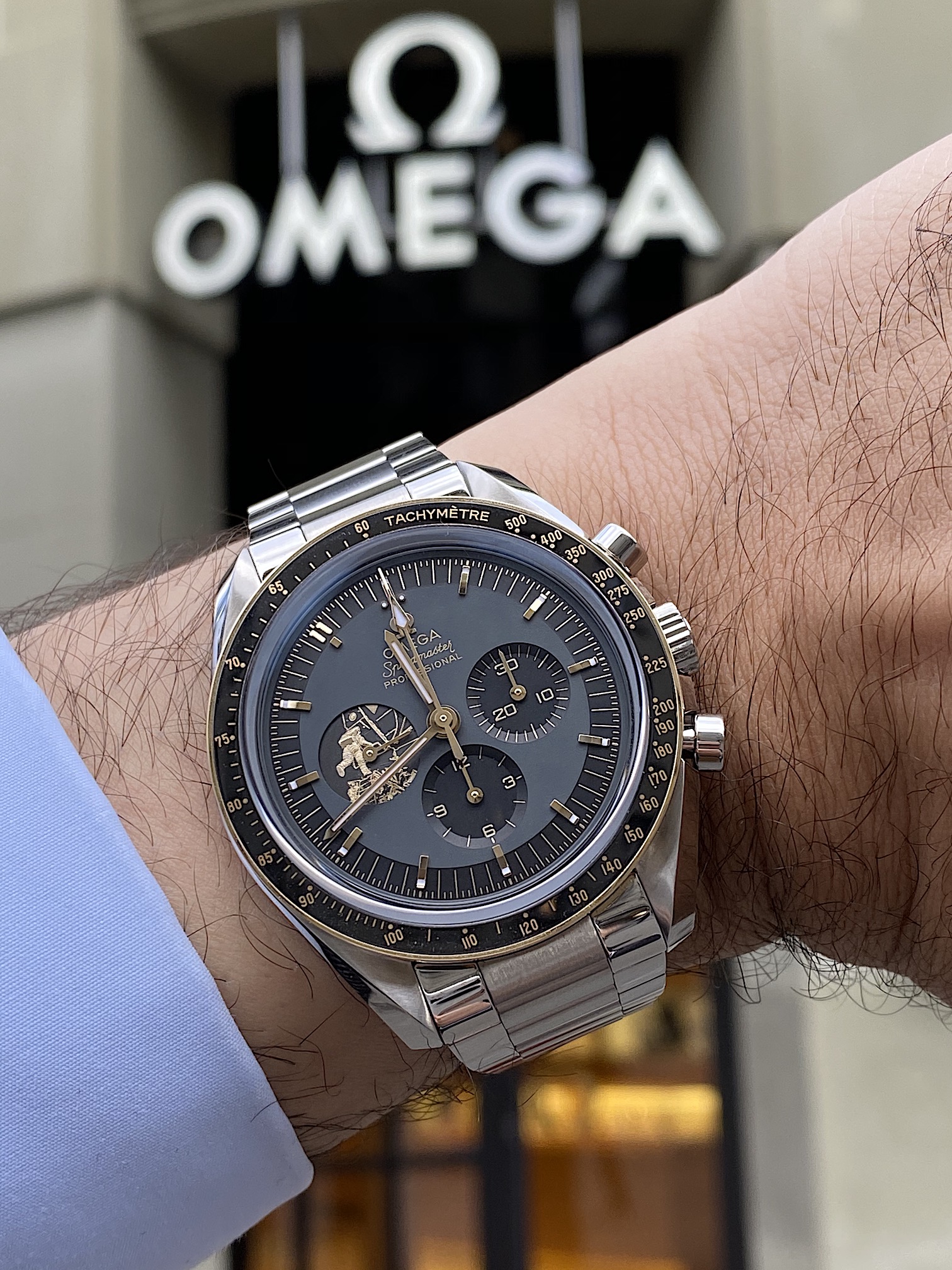 In summary, we found this commemorative speedmaster to be exactly what speedmaster enthusiast wanted: a very distinct design, a new gold alloy, new bracelet and updated METAS certified movement. An excellent choice.