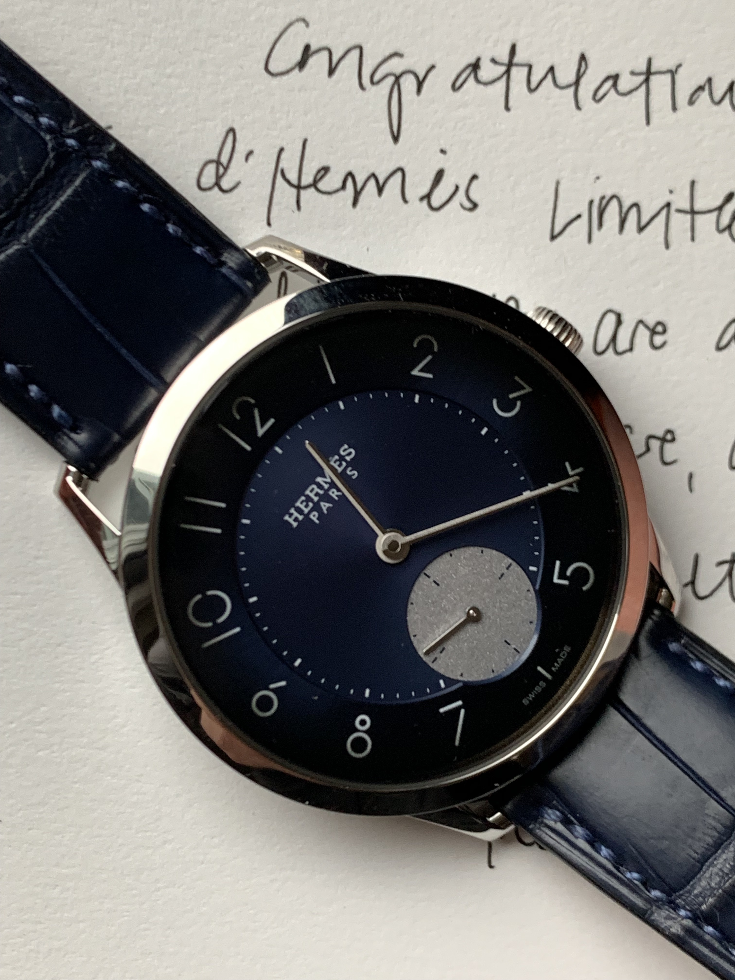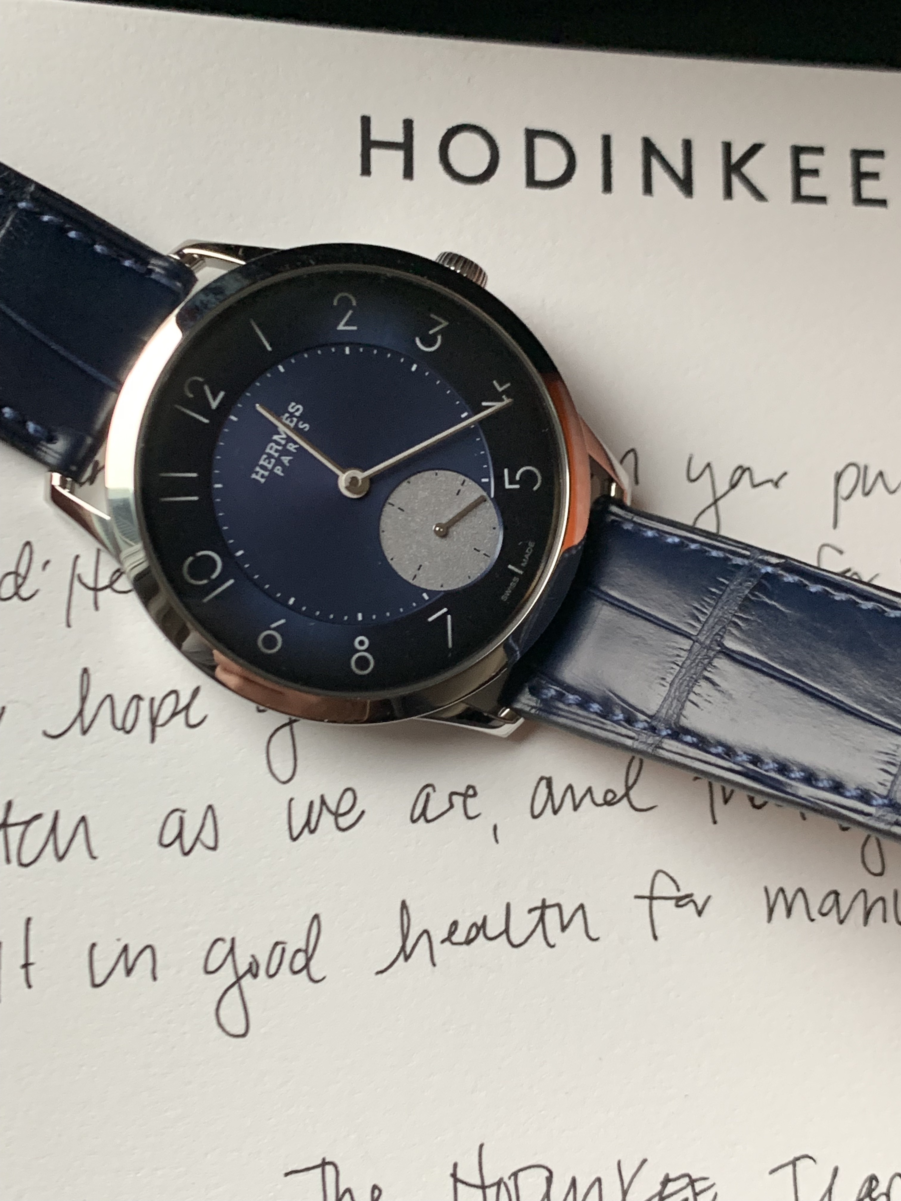 The packaging included the amazing Hermes wooden box but also an handwritten personal card by Hodinkee. An amazingly nice touch!