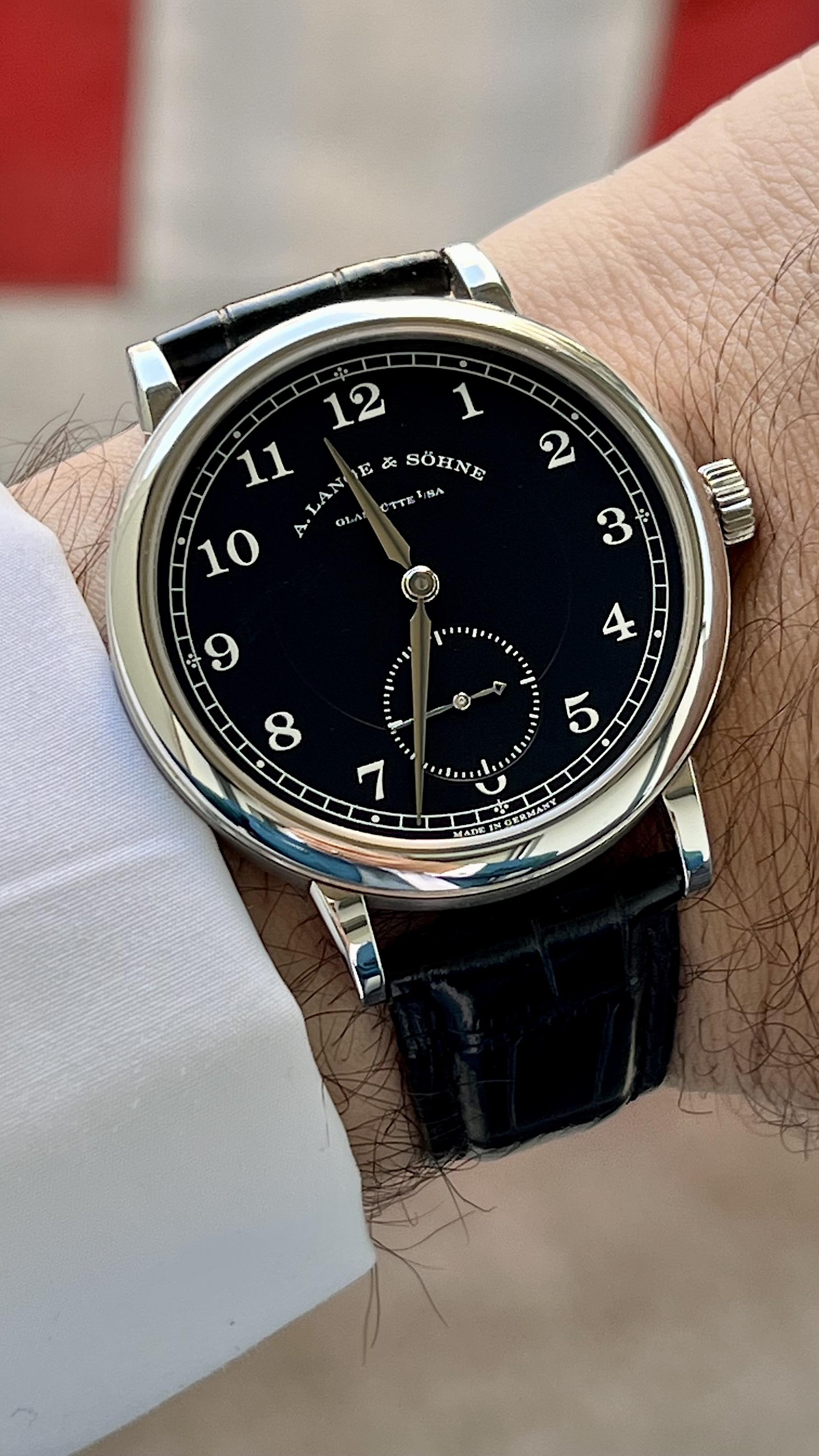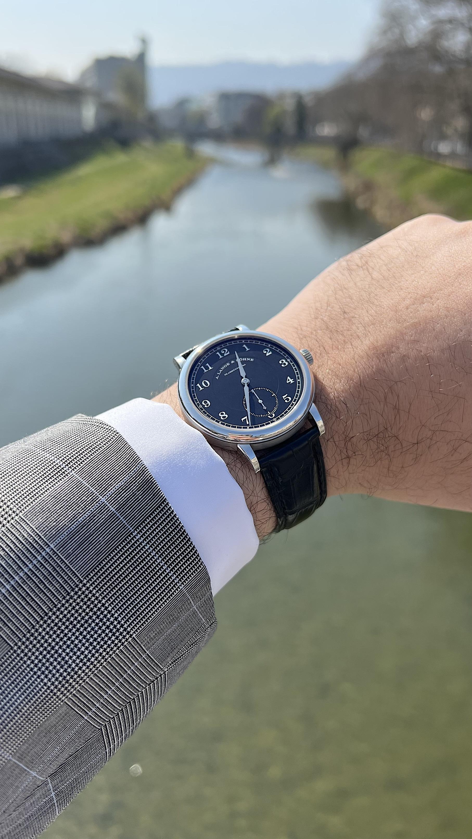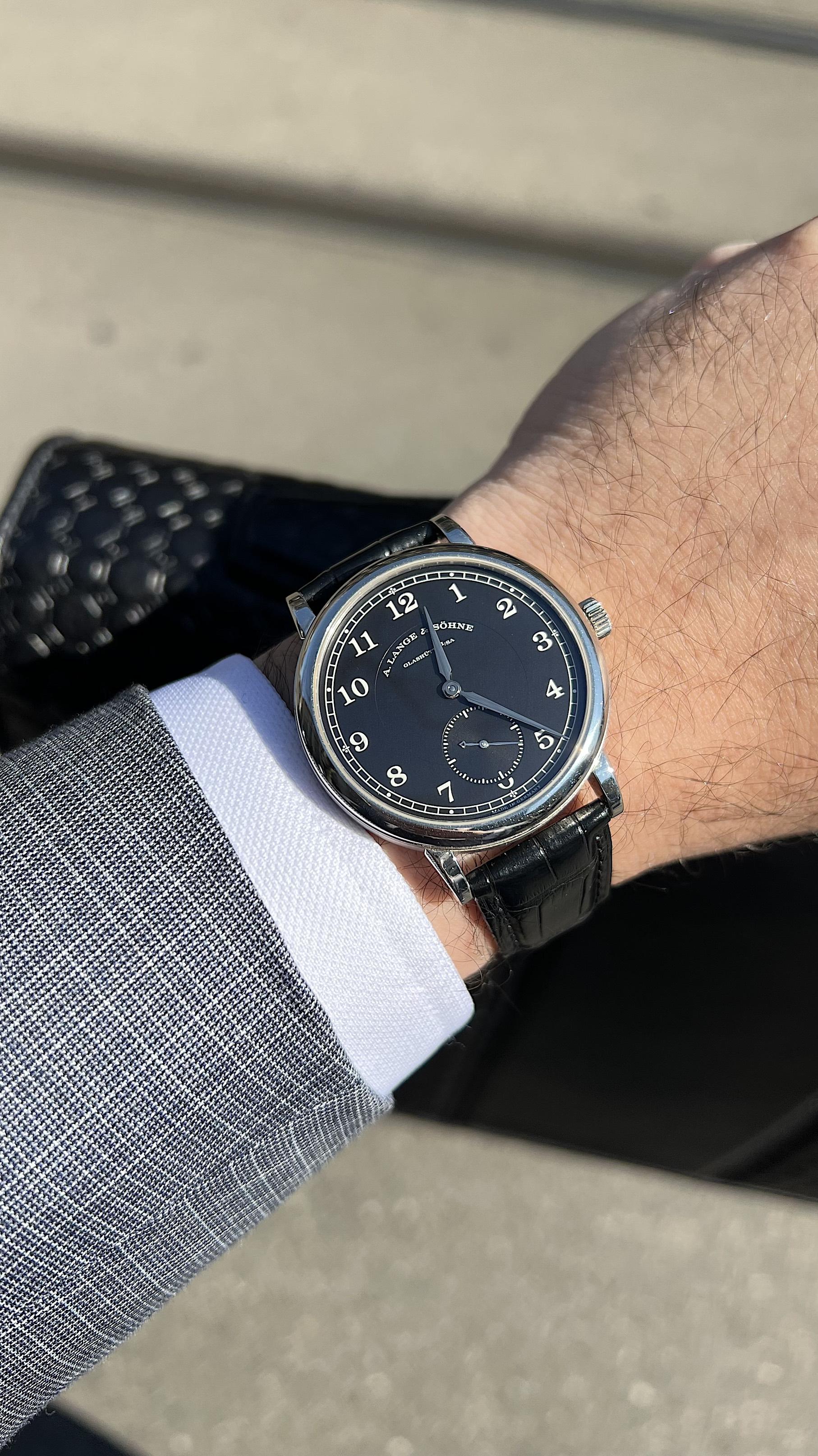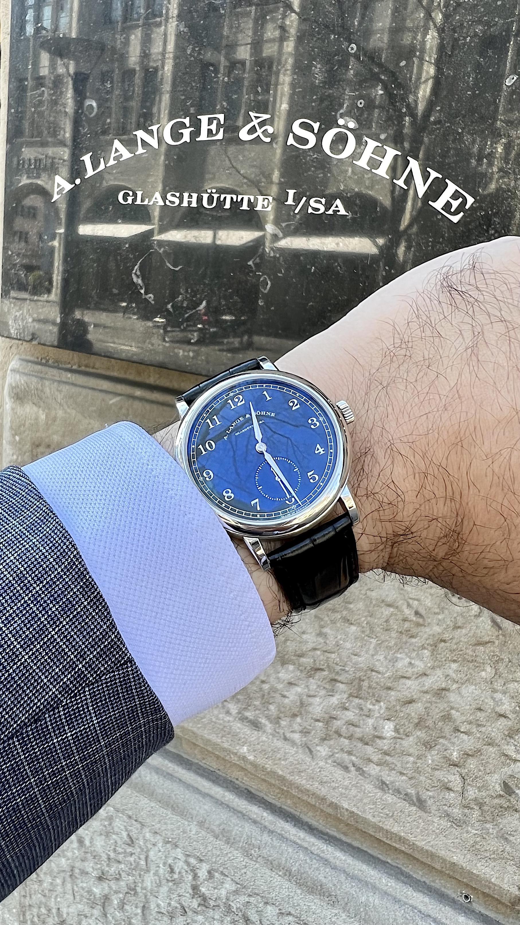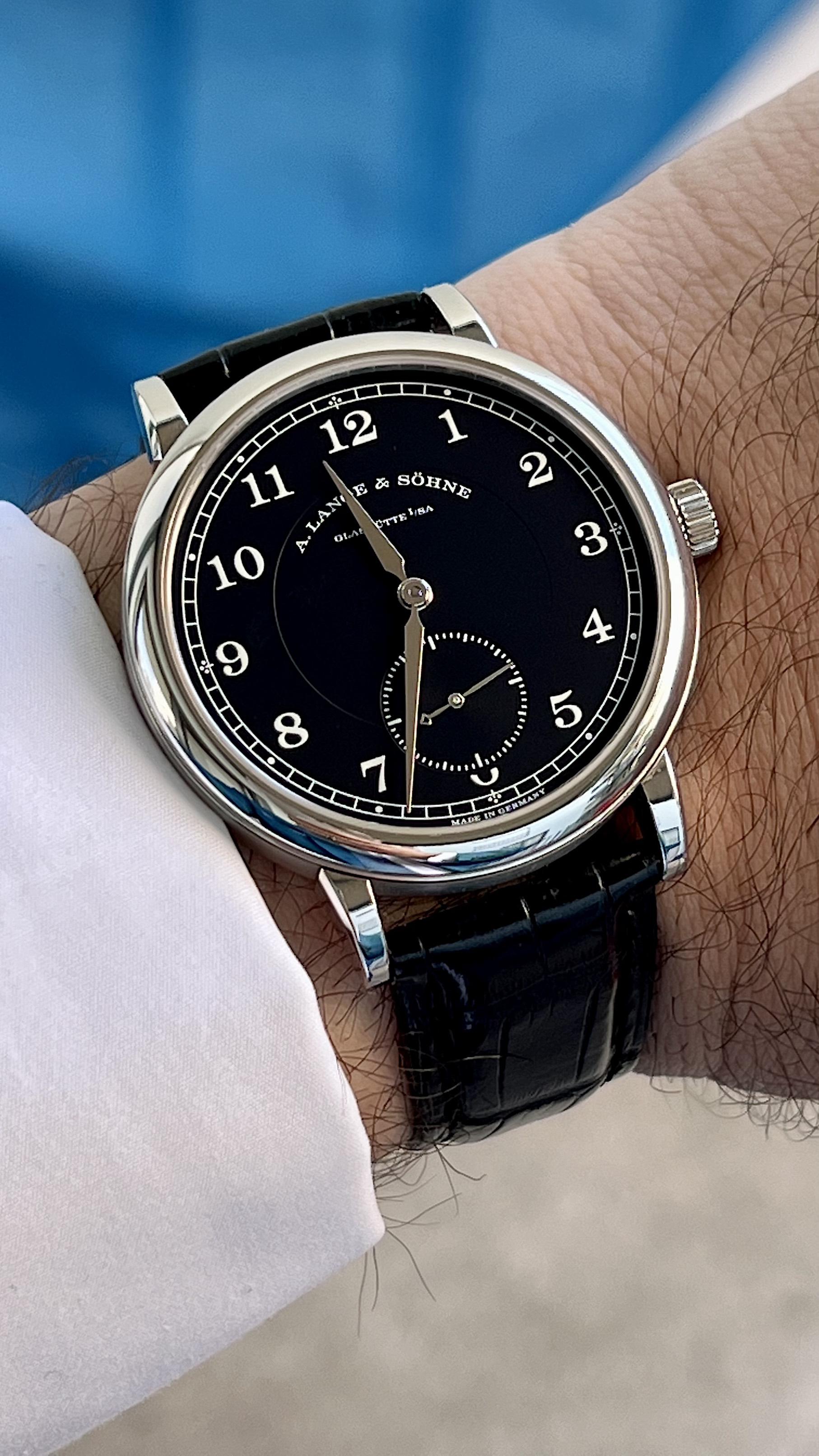 The pin buckle clasp in platinum with the engraving “LANGE” is very comfortable (I found deployant clasp a hit or miss even in many high-end brands). On the wrist the watch is very comfortable, despite the platinum the total weight including the strap is of just 103 grams.