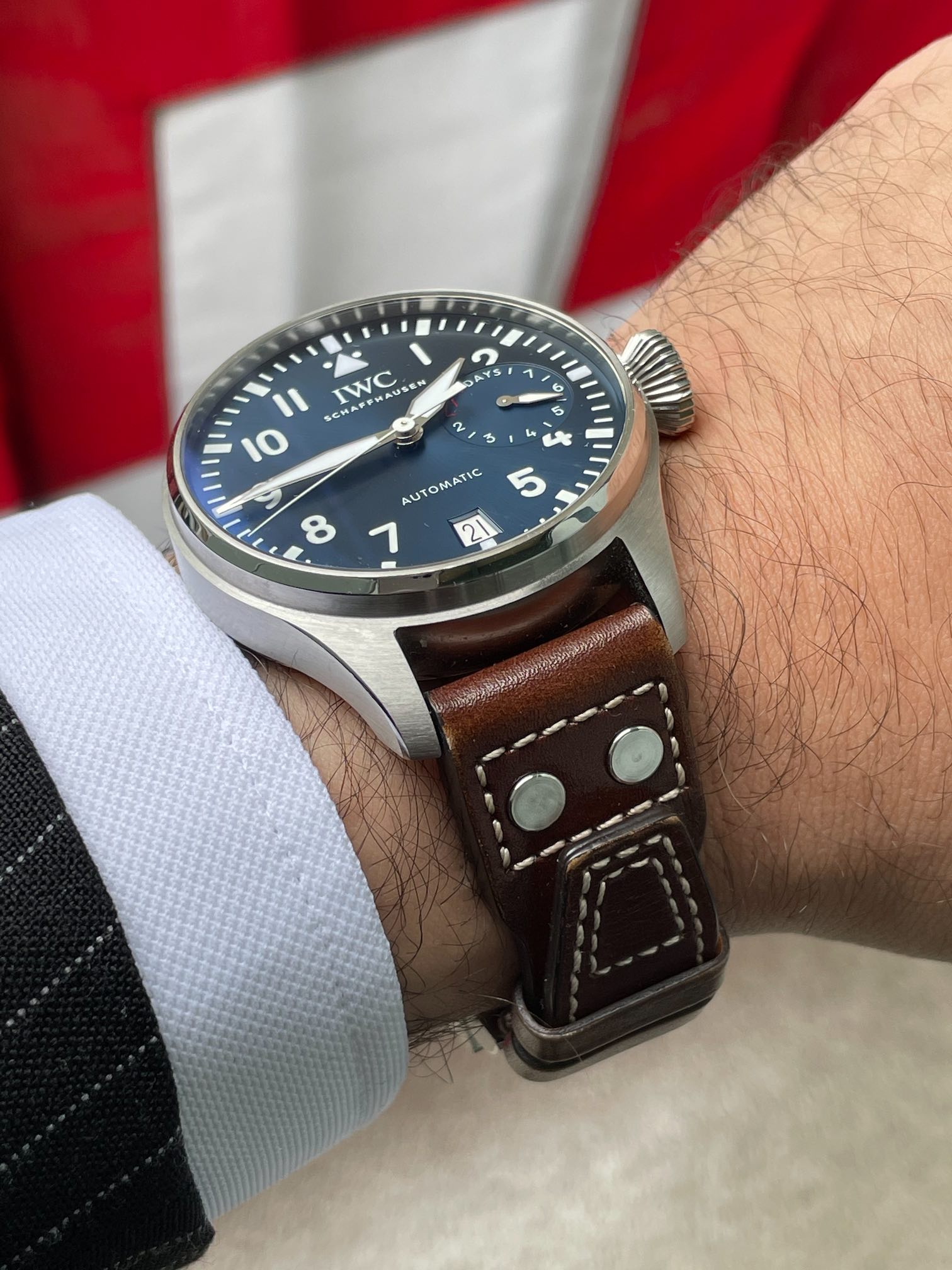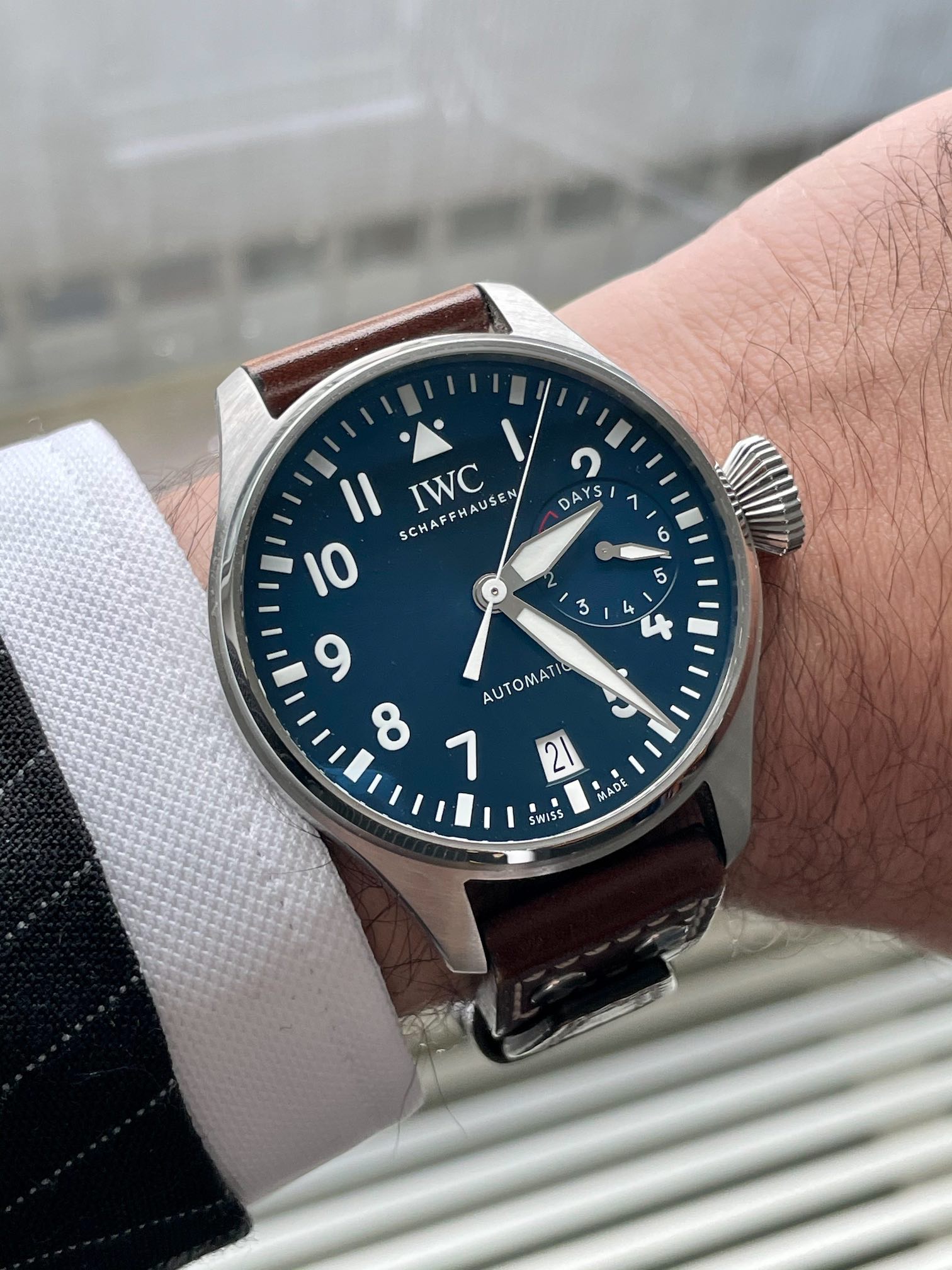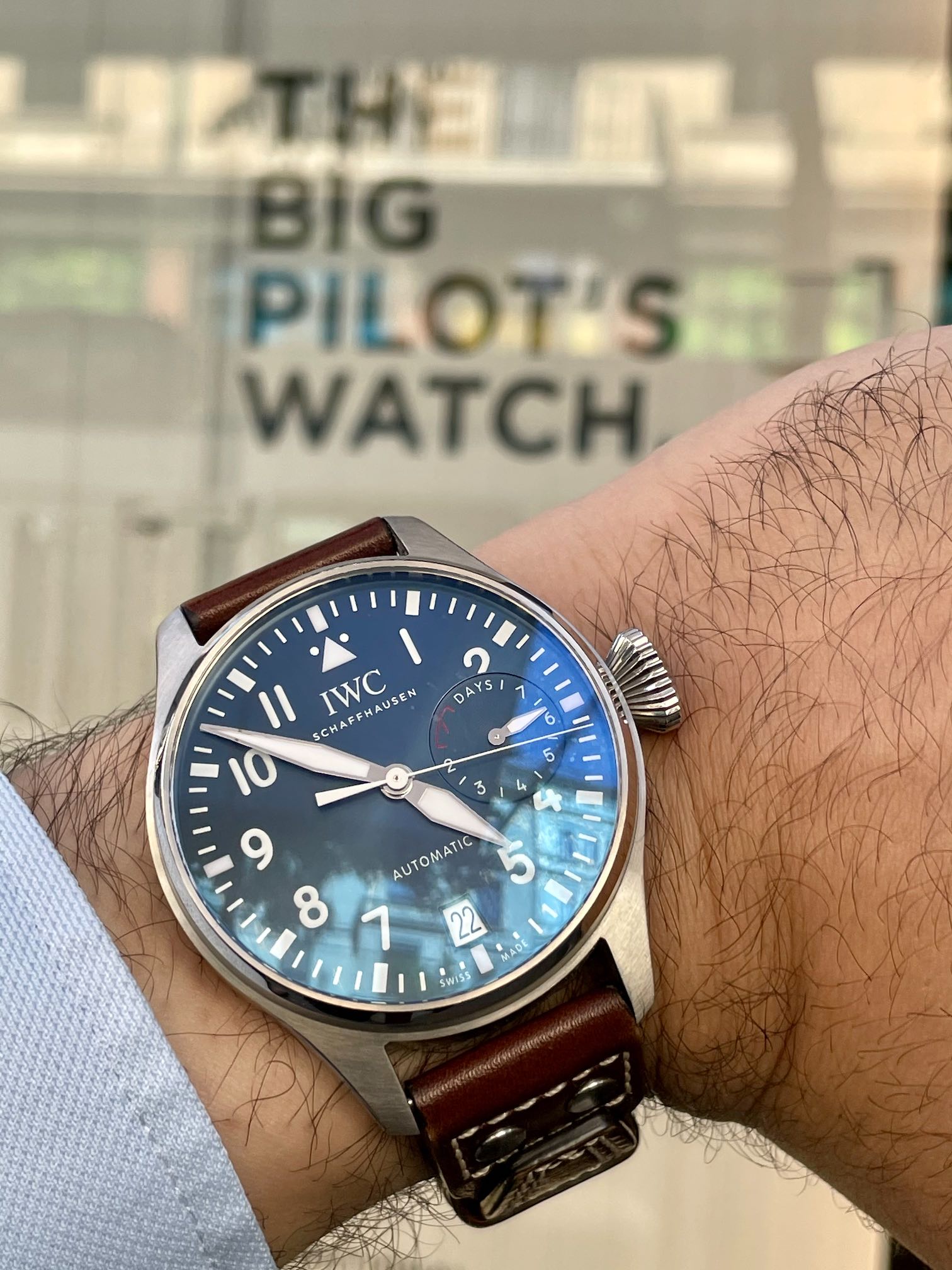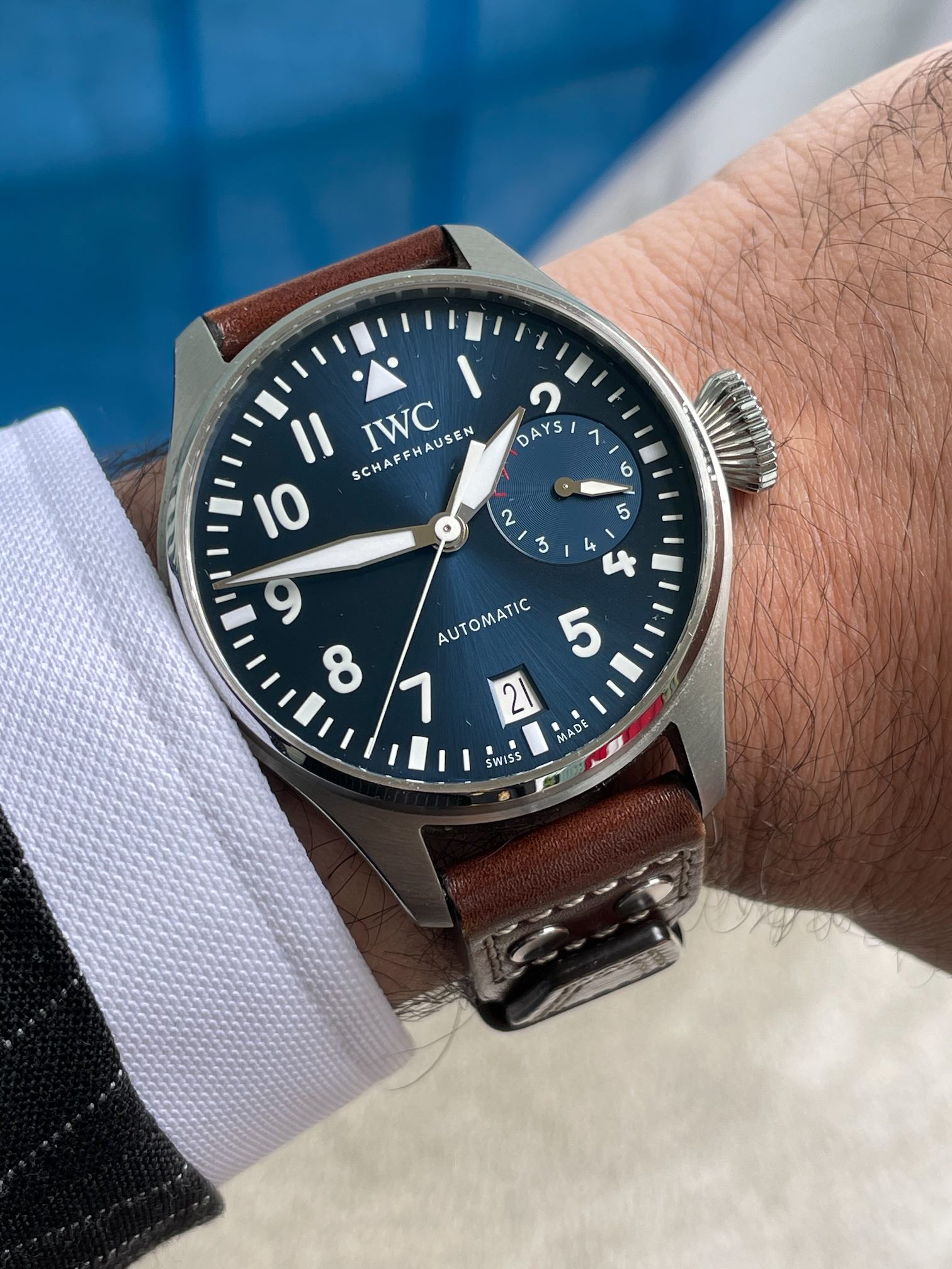 If size is a concern, the new 43mm versions might fit better but, even with a modest wrist, I think that the big pilot makes a statement and is (almost) never out of place.
