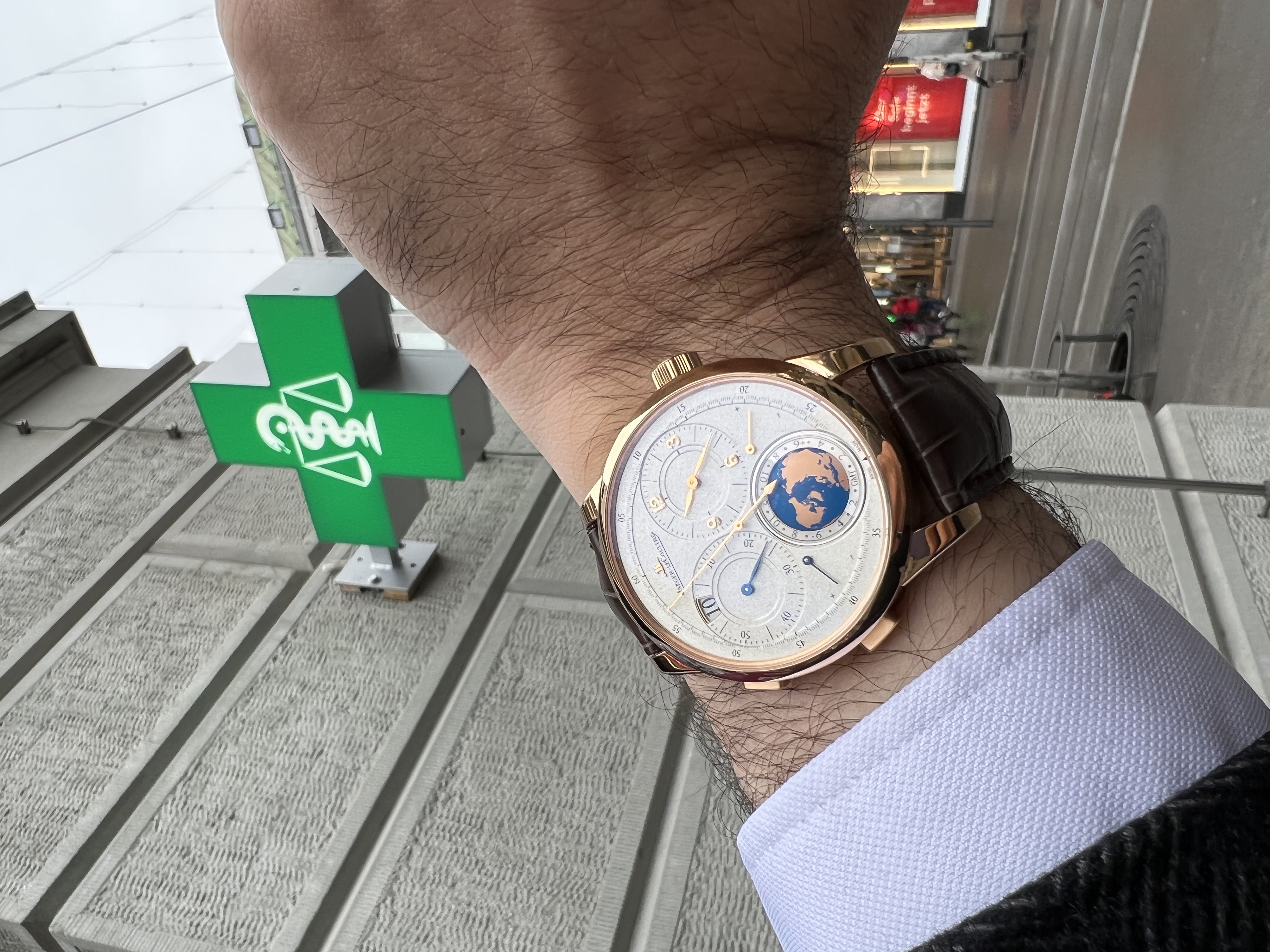 In summary, the Jaeger‑LeCoultre Duometre Unique Travel Time Review is indeed full of unique functionalities like setting the second time zone with minutes increments, zero reset seconds, two different power reserves and a very immersive representation of our planet in the middle. An excellent watch for the global CEO.