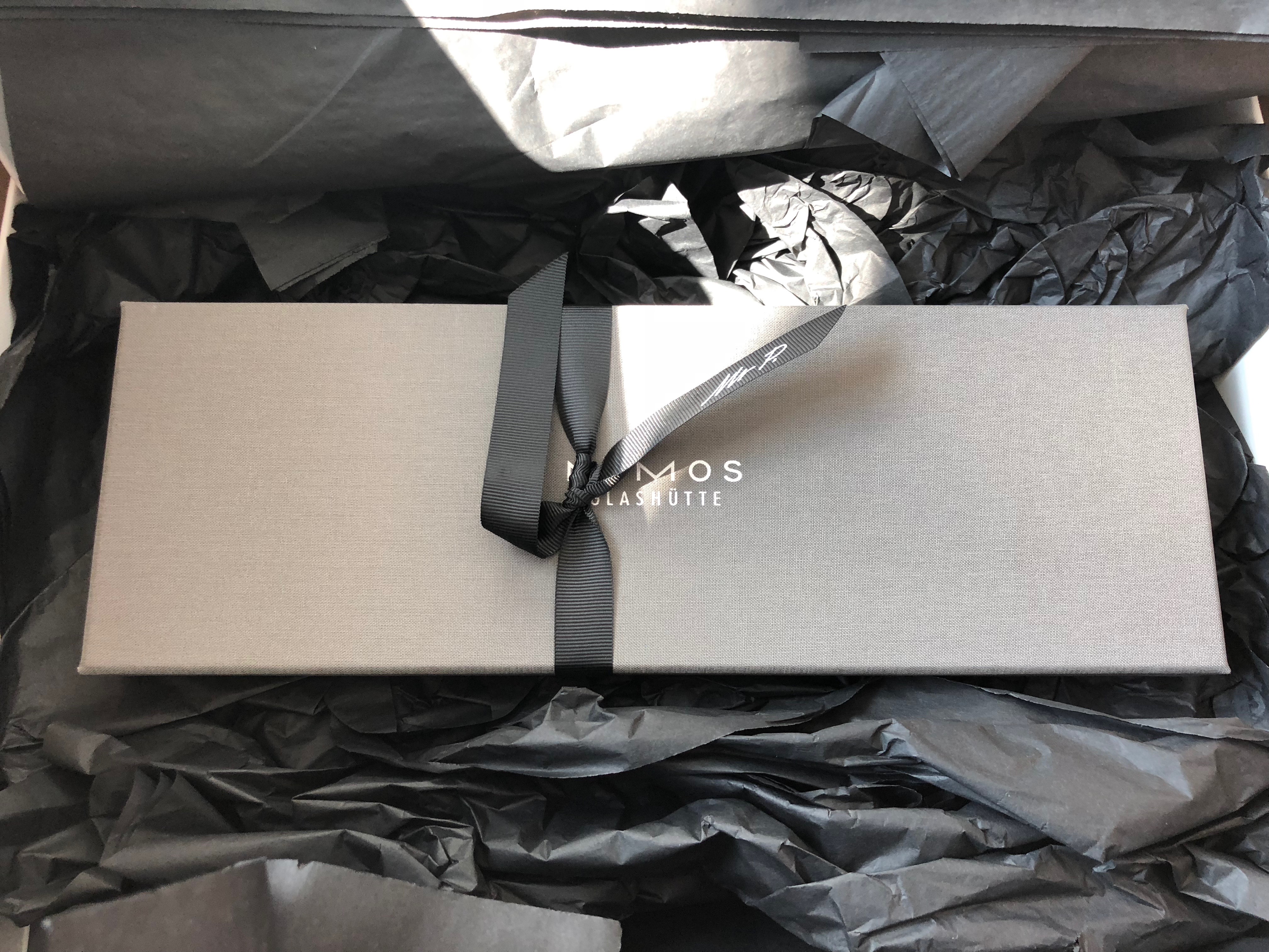 Nomos packages is notable no-nonsense. Mr Porter had a touch of class with a ribbon
