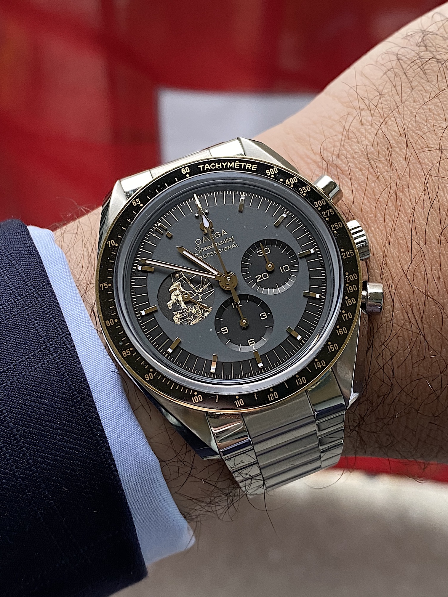 In summary, we found this commemorative speedmaster to be exactly what speedmaster enthusiast wanted: a very distinct design, a new gold alloy, new bracelet and updated METAS certified movement. An excellent choice.