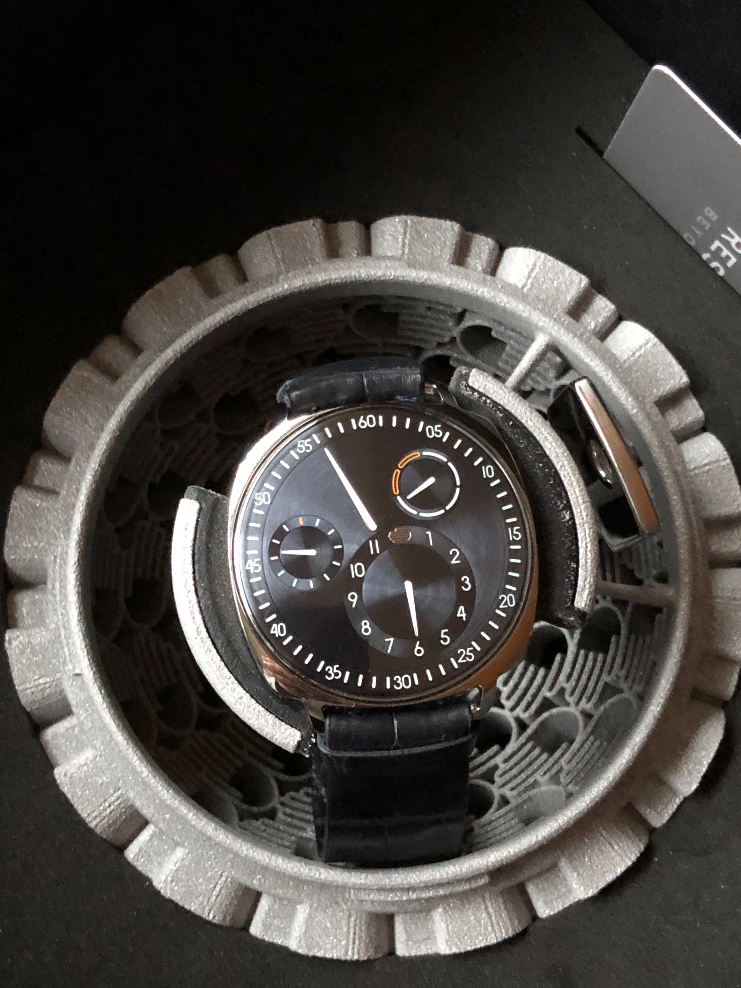 The Ressence Type 1 Squared comes with the new watch back realised with 3D printing that is very cool and more useful that the less original wooden boxes of the previous versions.