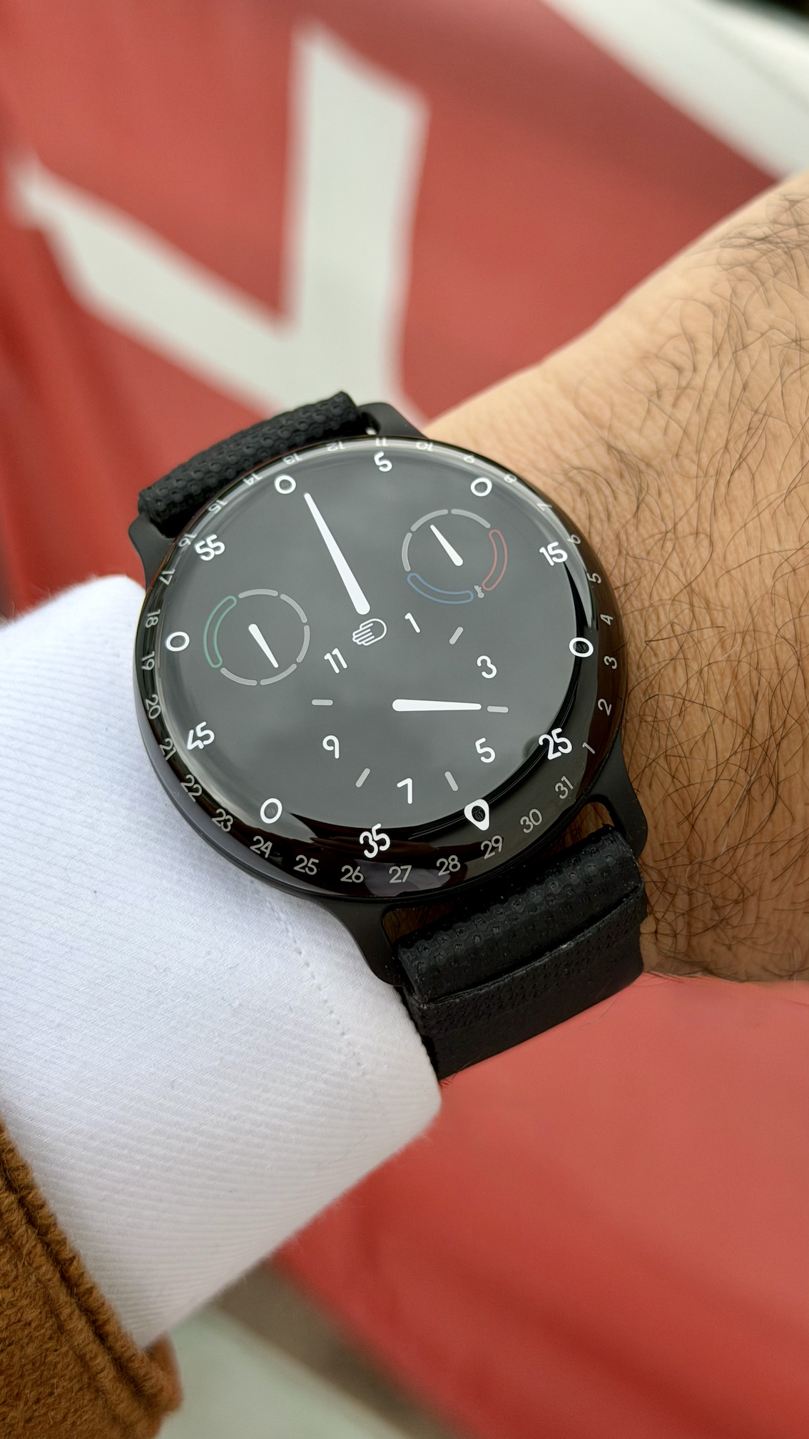 - Return of colour accents: The BBB stripped away all colour for a purely monochromatic experience. The BB2 reintroduces Ressence's signature primary colour palette in restrained doses—green highlights the weekend on the day indicator, while red and blue mark the oil temperature gauge. These touches add functional clarity without compromising the hyper-minimal aesthetic.