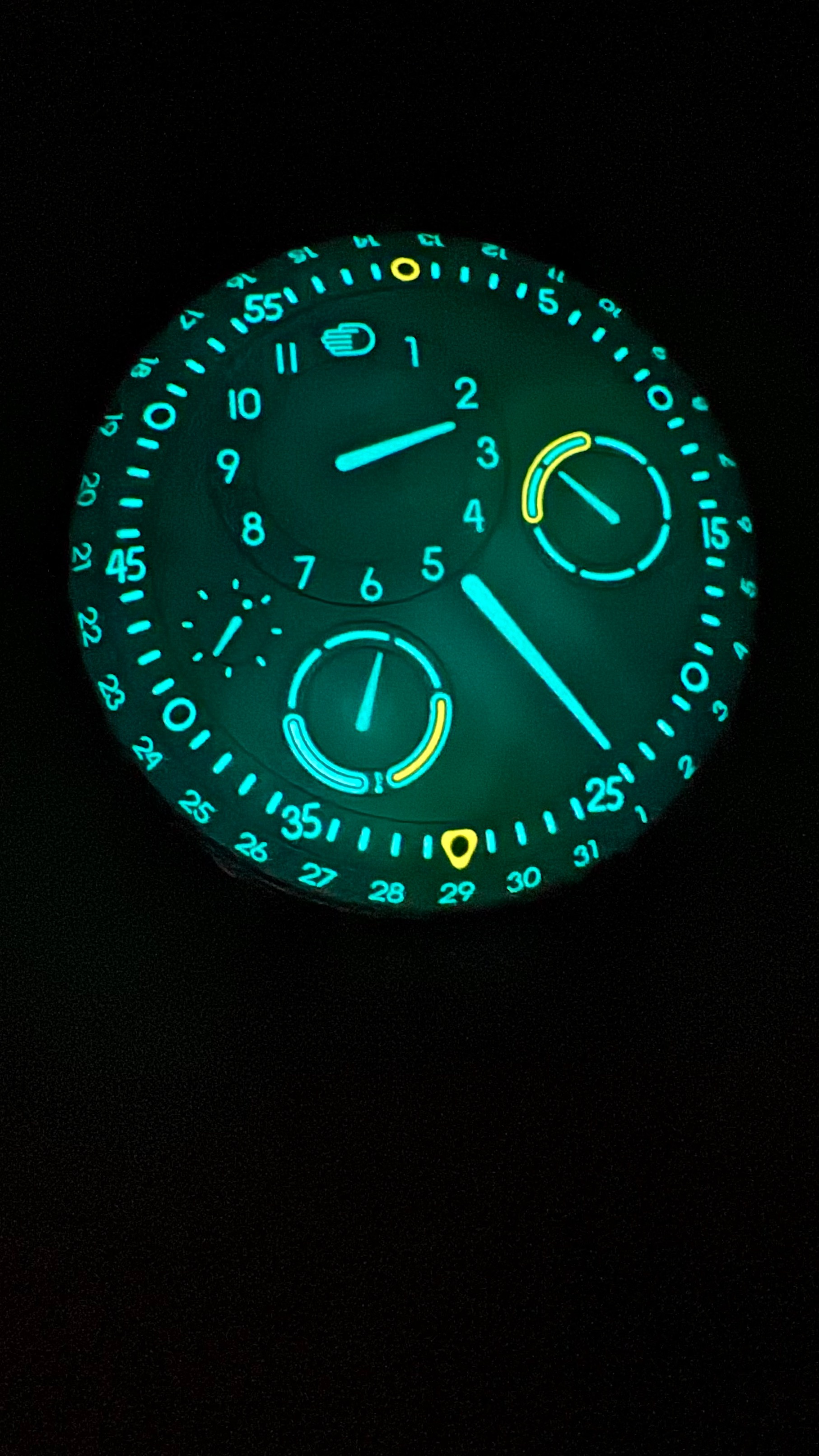 What sets this watch further apart is its oil-filled upper chamber. In our experience at watches.club, we've rarely seen a feature like this that practically eliminates reflections on the glass. This ensures optimal legibility from any angle, enhancing both form and function.