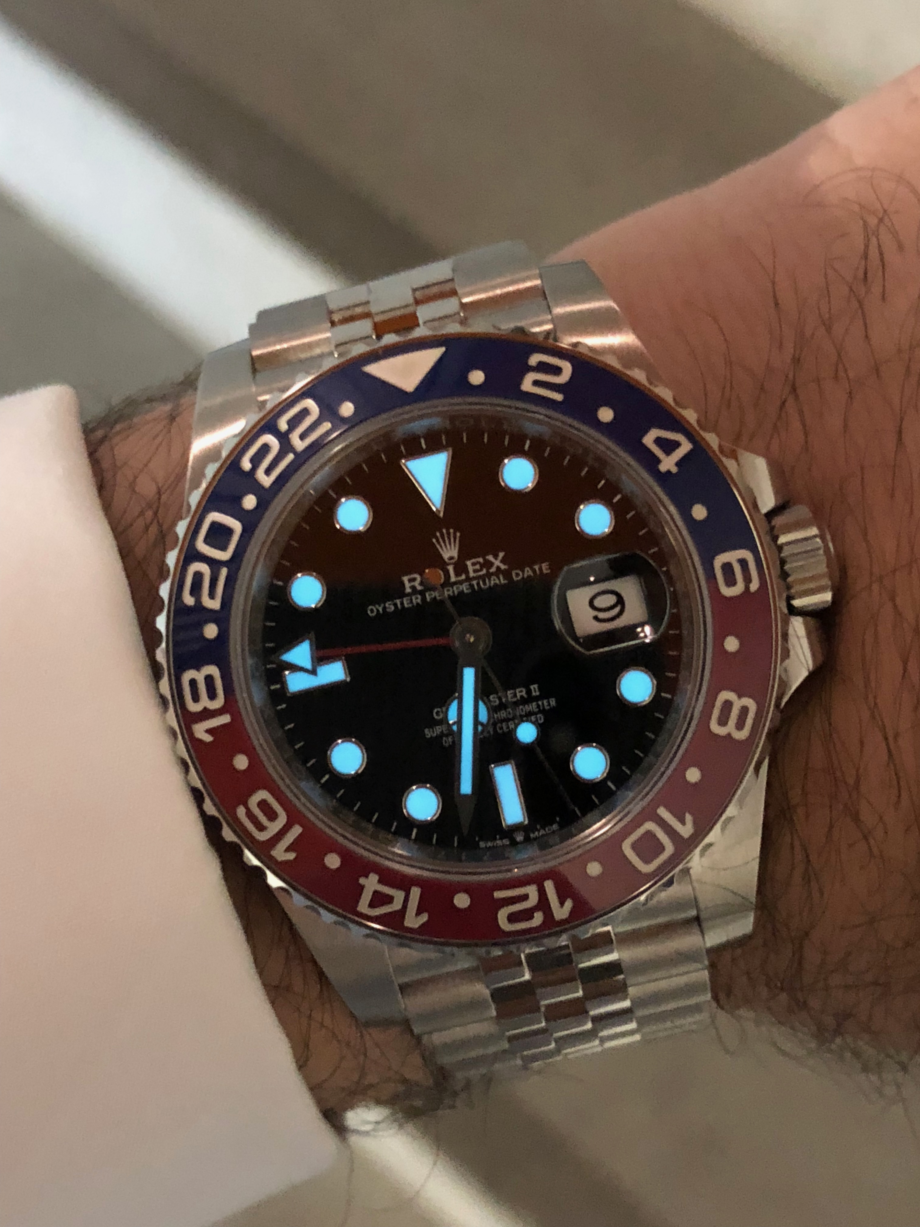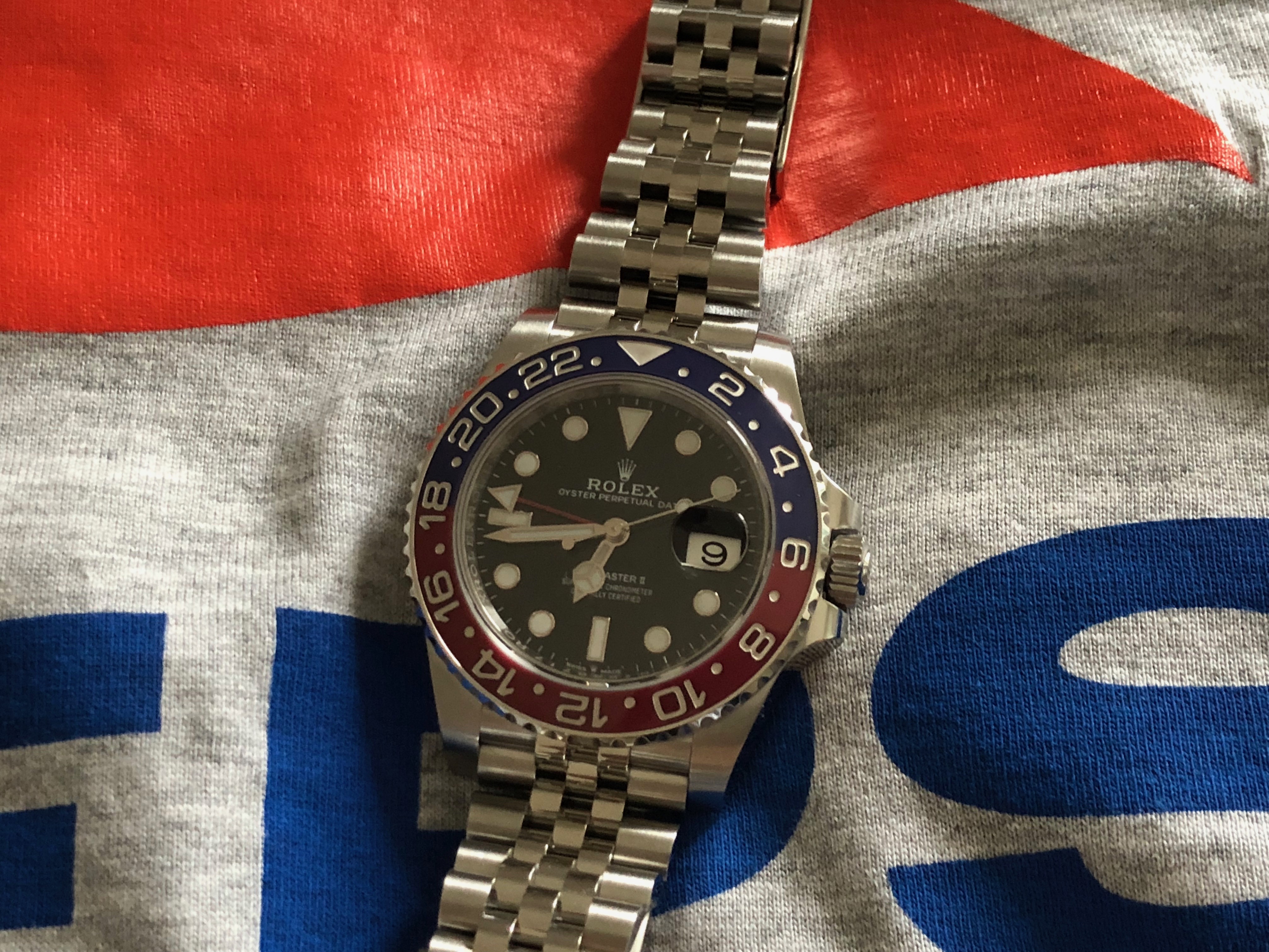 The watch nickname "pepsi" comes from the red/blue bezel colour. Some critics feel that the blue is a bit too purple but in my view it is well balanced and looks stunning at natural light