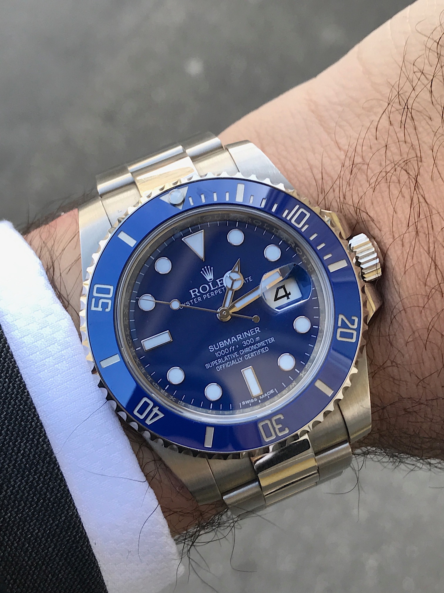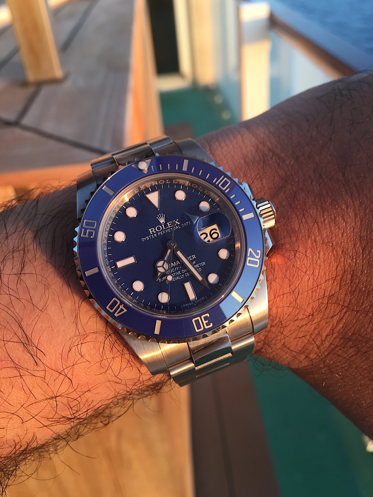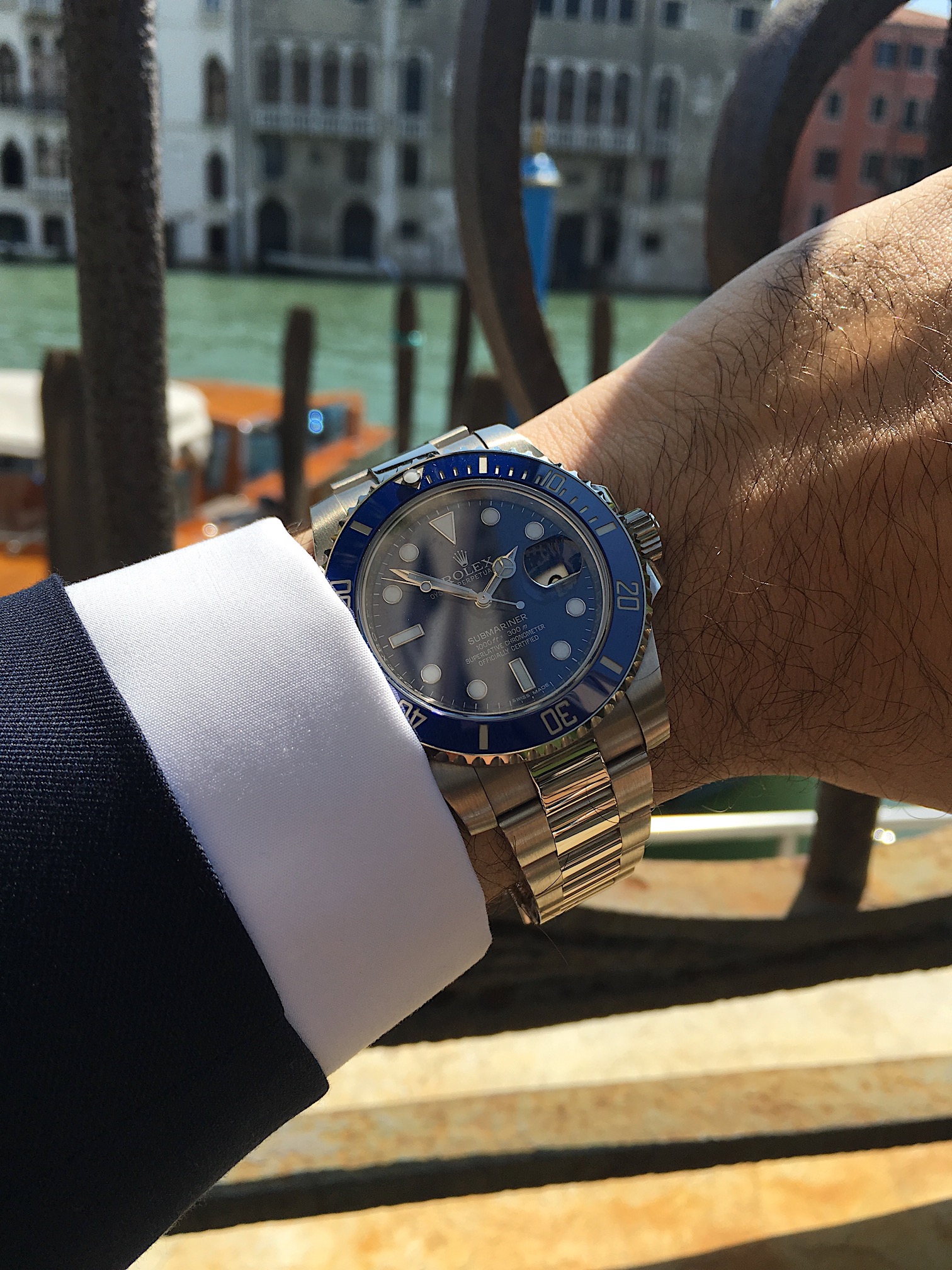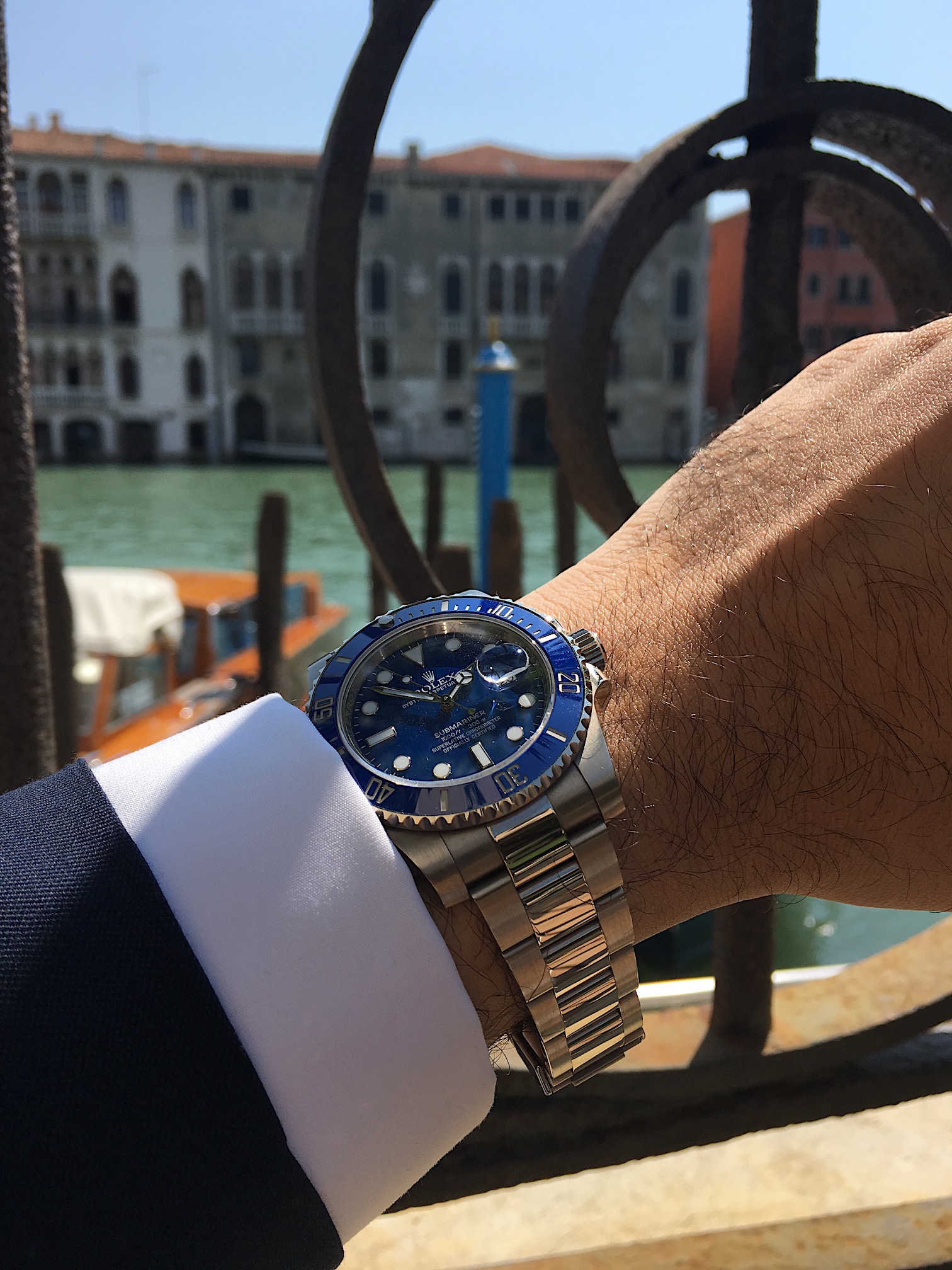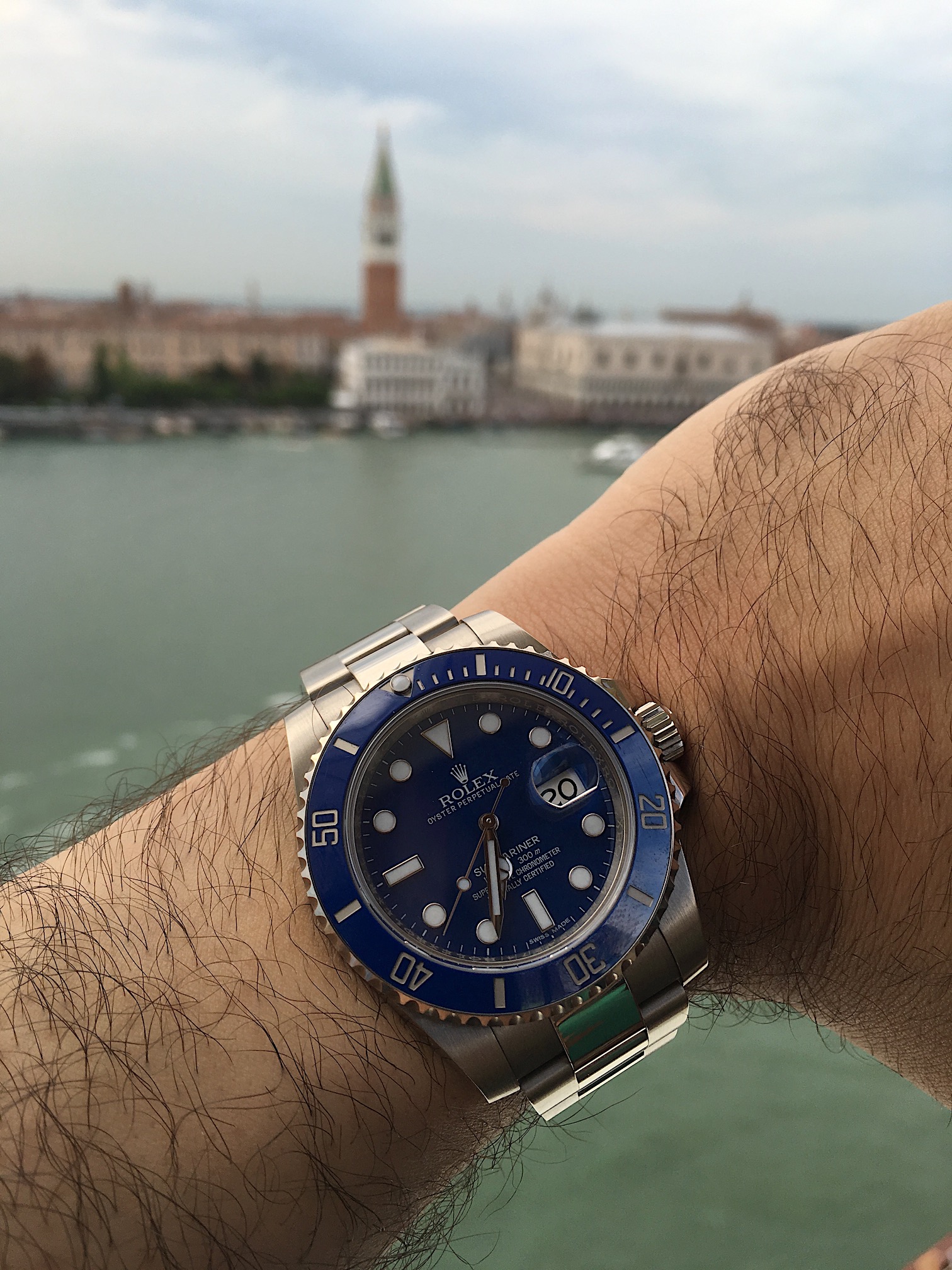 in 2008 Rolex also launched a white gold version distinguished by the matt blue dial and bezel that lead to the nickname of "smurf" here you can see it in Venice, Italy very much comfortable with water
