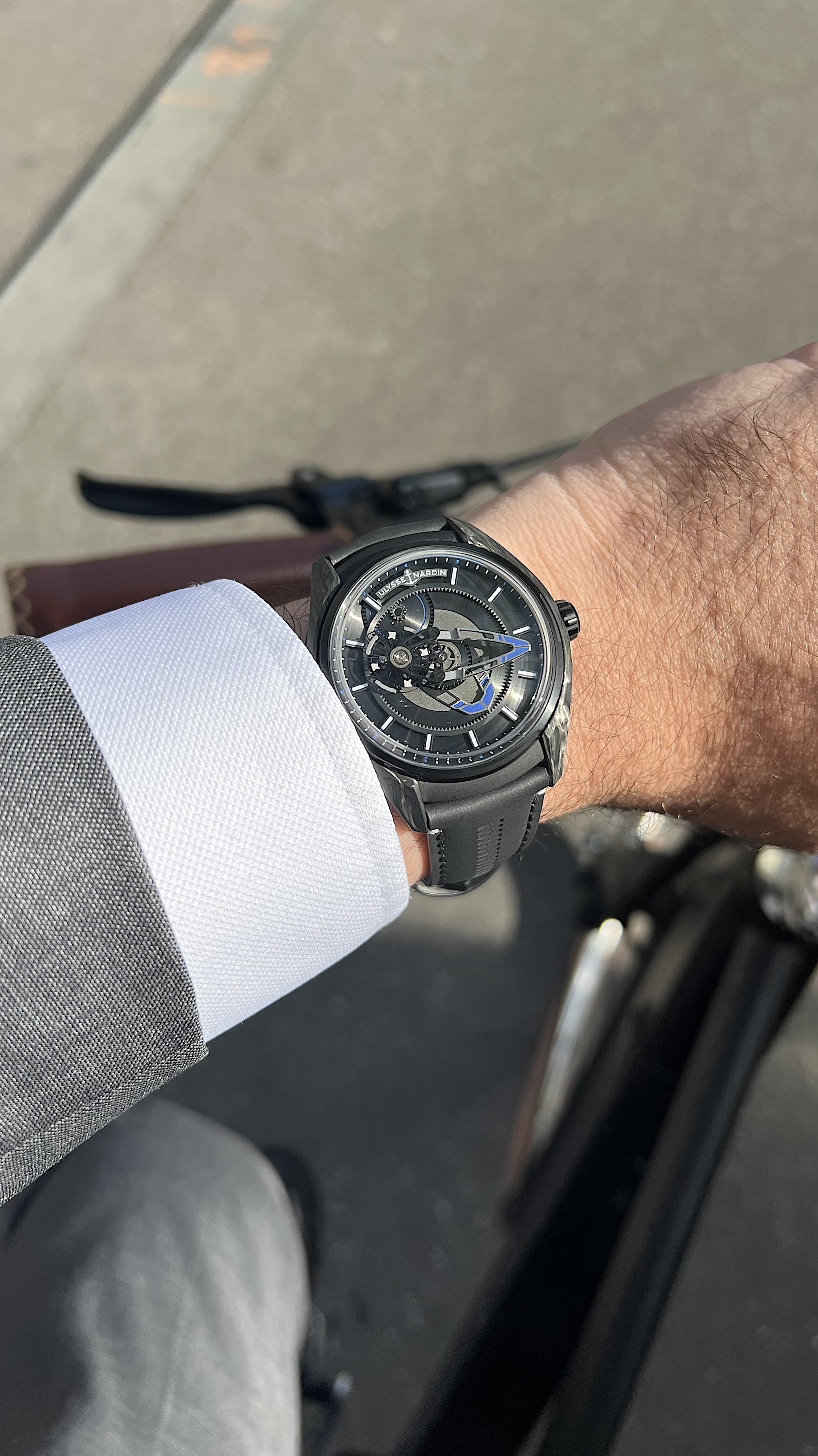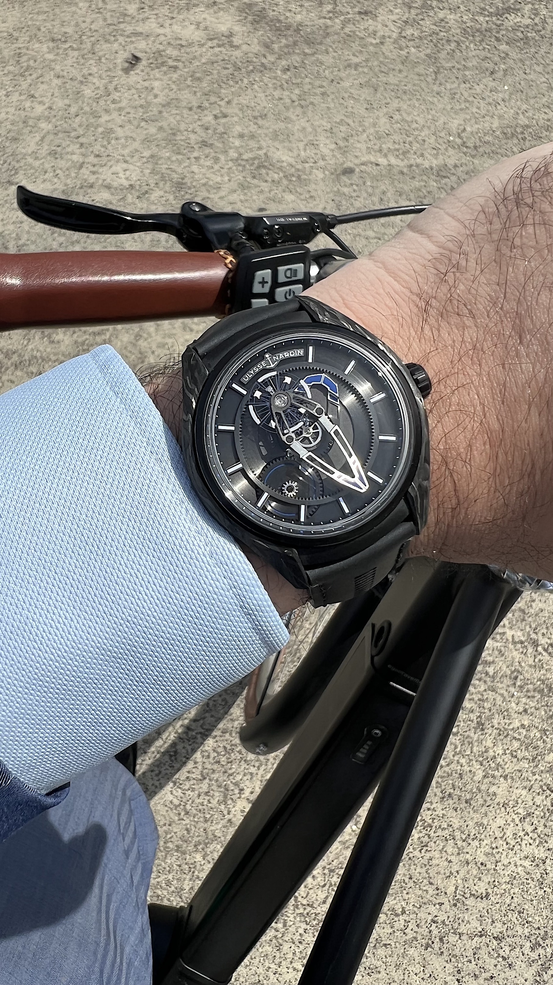 It fits very well even on small wrist and legibility is not as bad as one might think! The Carbonium case looks fantastic. I know that the X also exist in titanium but I find the Carbonium case much more appealing.